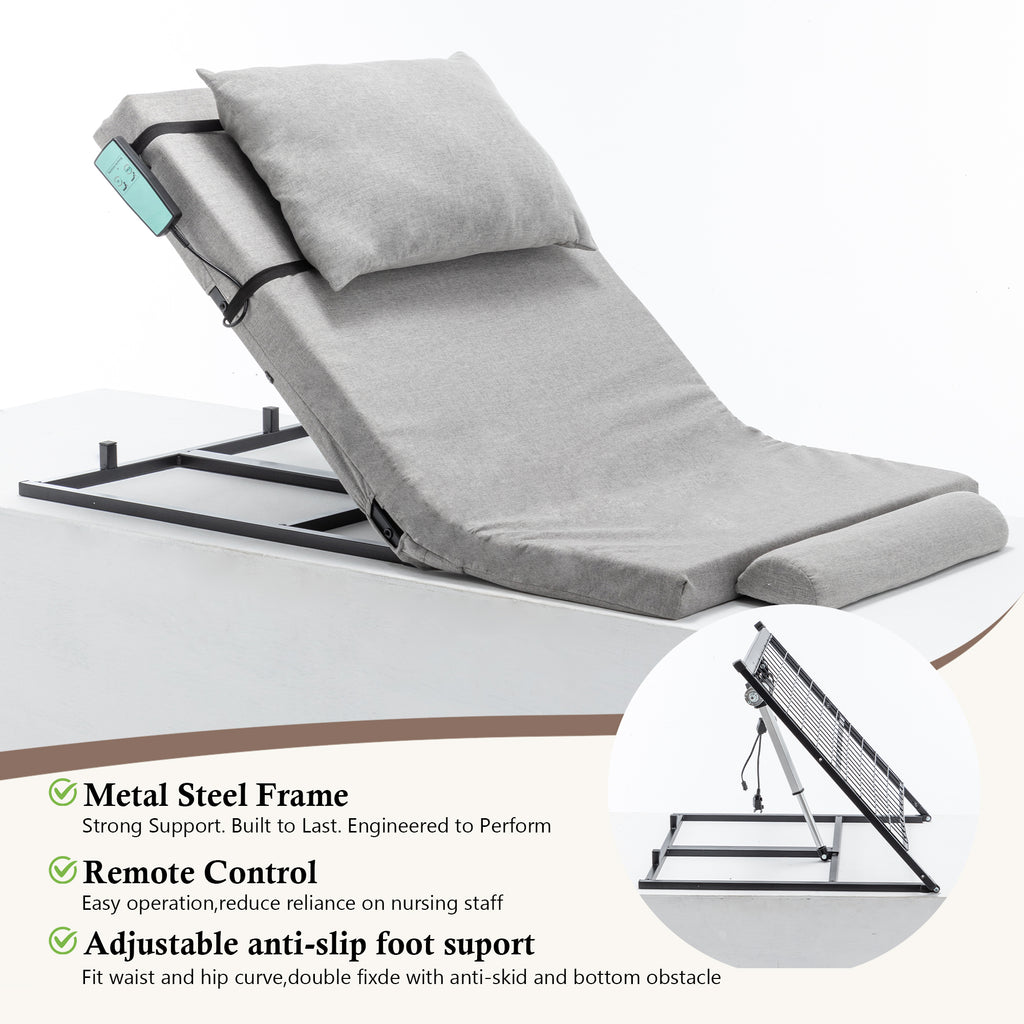 - 【Superior Support & Safety】Crafted with a robust carbon steel frame and high-density supportive foam, this electric backrest effortlessly supports up to 300 lbs. The reinforced structure and anti-collapse safety rails prevent slipping or tipping, offering peace of mind for users and caregivers.